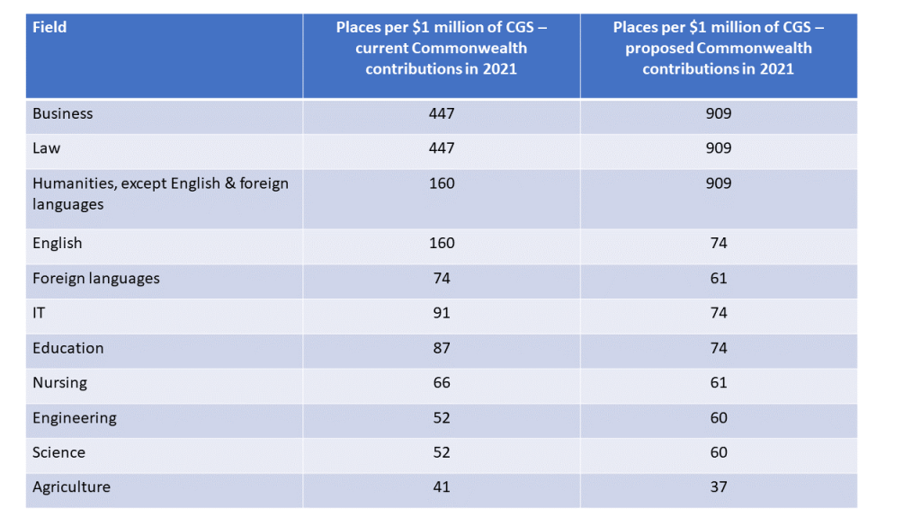 Any growth in Commonwealth-funded student places would not be driven by increased Commonwealth Grant scheme funding, but instead by lower average funding rates. Universities would, on average, need to deliver more student places to receive each $1 million of CGS funding.