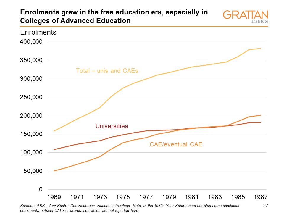 Commonwealth centralisation in the 1970s creates a big counter-factual – how would things have been different if, like the US or Canada, Australia had retained a federal higher education system? But, for better or for worse, the big policy decisions were national from 1974.
