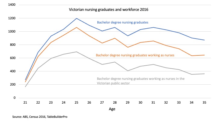 This could be the principal benefit of the policy for the Victorian public sector. Unfortunately I don’t have more recent data but in 2016 about 30 per cent of young nursing graduates in Victoria worked outside the public sector. Obviously, however, the public sector taking a larger share of nursing graduates could mean shortages in non-public sector health institutions.