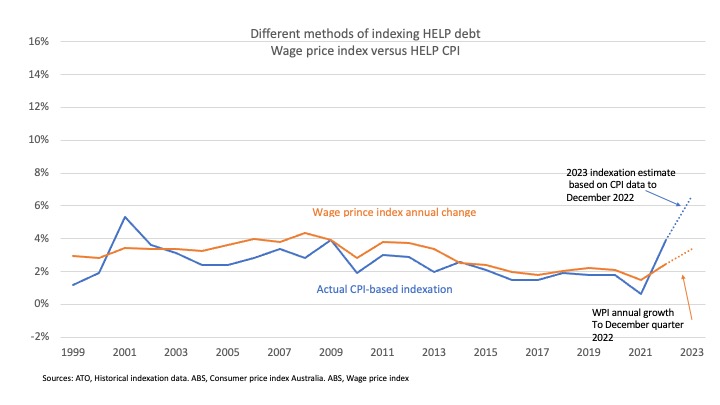 Should HELP debt be indexed at the lesser of CPI and another economic indicator?