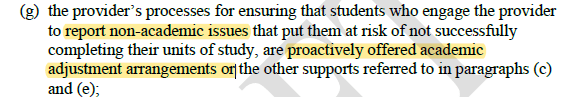 A broad definition of ‘non-academic issues’ is a problem when combined with a mandated requirement to proactively offer an ‘academic adjustment arrangement’, also not defined.