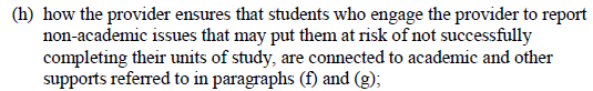 The relevant ‘non-academic issues’ are not defined. Confusingly, the Higher Education Guidelines 2023, which the student support guidelines would amend, define non-academic matters (as opposed to ‘issues’) as ‘matters which do not relate to student progress, assessment, curriculum and awards in a course of study’ (emphasis added). So non-academic issues are about student progress but non-academic matters are not.