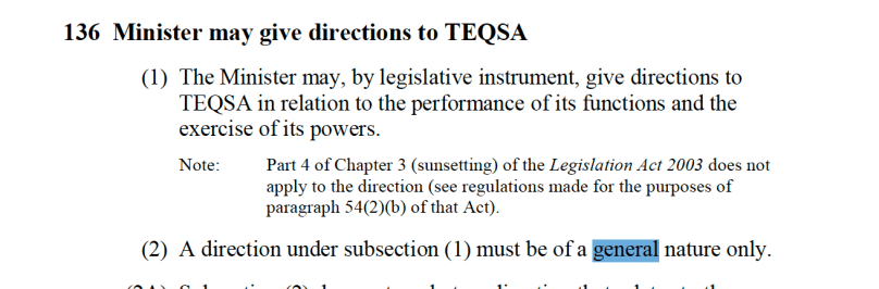 The minister would have ‘statutory powers to direct the ATEC on particular matters’. I’m not exactly sure what ‘particular’ means here – only matters as specified in the ATEC legislation, or the particular details of ATEC decisions?