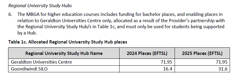 The regional university study hubs CGS sub-allocation also sets a bad precedent in requiring a university to transfer CGS money to third parties.