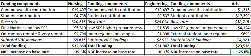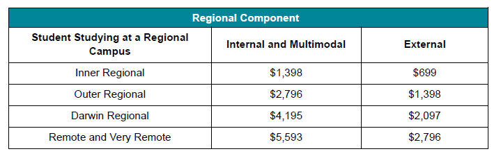 The regional component funds students at regional campuses rather than regional students. It assumes higher average costs at regional campuses. A longstanding ‘regional loading’ served a similar purpose. Just under $90 million was spent on the regional loading in 2025. Universities have been notified of their needs based funding amounts, but as of 23 February 2026 I cannot find a public record of them.