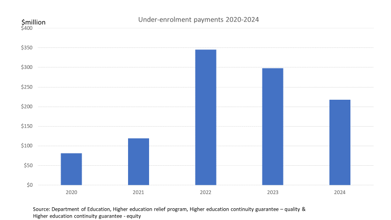 This is called ‘under-enrolment’ because universities did not deliver sufficient Commonwealth supported places to receive their maximum grant amount.