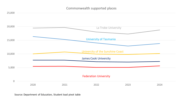 While all five universities suffered from declining Commonwealth supported places, in only two of the cases was this a dramatic drop.